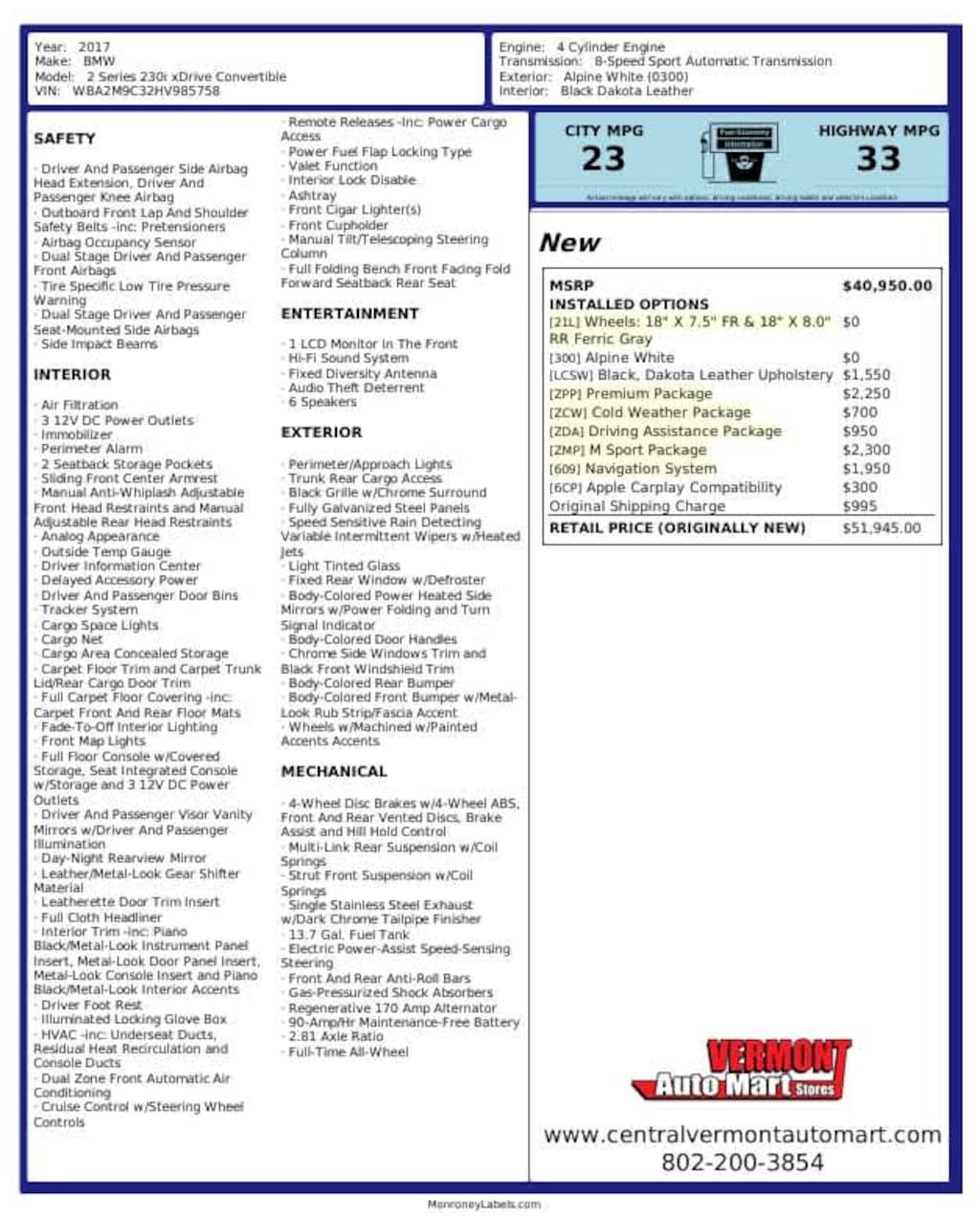 Used 2017 BMW230i xDriveDrive A Great Deal Home from Upper Valley Auto Mart in White River Jct. VT