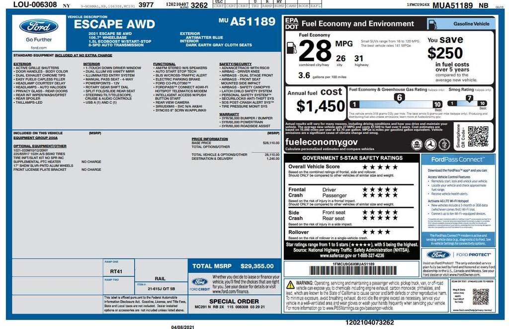 All Wheel Drive, Back-Up Camera, Satellite Radio, iPod/MP3 Input, Onboard Communications System Ford SE with Antimatter Blue exterior and Dark Earth Gray interior features a 3 Cylinder Engine with 181 HP at 6000 RPM*.